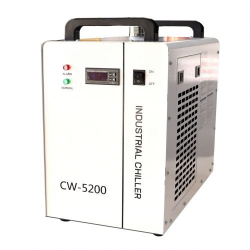 Чиллер CW 5200 — промышленное устройство водяного охлаждения, предназначенное для поддержания стабильной температуры воды в лазерных станках с CO₂-лазерными трубками и другом оборудовании, требующем эффективного теплоотвода. Он обеспечивает надежную работу лазерной трубки, предотвращая перегрев и продлевая срок службы оборудования.